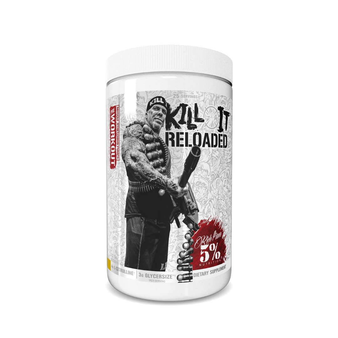 "Kill it Reloaded" - Der Trainingsbooster von Rich Piana 5% Nutrition hat innerhalb kürzester Zeit den Markt aufgemischt. Ziel von Rich Piana war es, einen Pre-Workout Booster zu schaffen der einen messerscharfen Focus und einen brachialen Pump bei jedem Satz gibt. Besonders der Pump ist bei diesem Pre-Workout Supplement eine Klasse für sich. Die abgestimmte Mixtur aus L-Citrullin, Beta Alanin und L-Norvalin lässt beim Training die Muskeln prall und voluminös erscheinen. Wir vom Muskelmacher Shop empfehlen aus eigener Erfahrung den Kill it Pre-Workout Booster von Rich Piana 5% Nutrition für Bodybuilder die ein neuartiges Pump-Erlebnis suchen und auf einen starken Fokus nicht verzichten wollen!