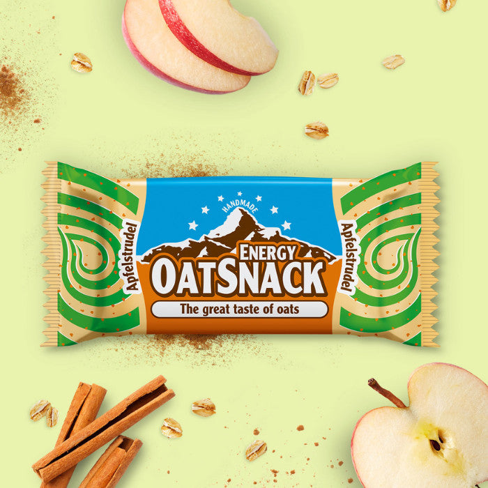 Haferflocken bilden die Basis für den Energy OatSnack, der je nach Geschmacksvariation mit ausgewählten Zutaten wie Früchten, Nüssen oder Kokosflocken verfeinert wird. Der Riegel sorgt auch ohne Topping für ein leckeres Geschmackserlebnis. Der ideale Snack für zwichendurch.14 Verschiedene Sorten der Oatsnack Variation sind verfügbar - für jeden Geschmack ist etwas dabei!